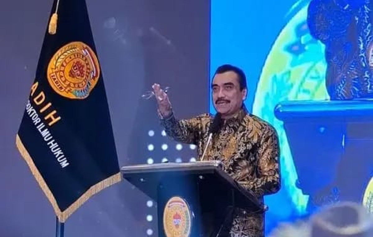 Ketua Umum Perkumpulan Ikatan Alumni Doktor Ilmu Hukum (IADIH) Universitas Jayabaya Harris Arthur Hedar dalam acara pengukuhan di Jakarta, Jumat (19/9/2025). (ANTARA/HO-IADIH Universitas Jayabaya)
