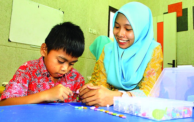 Perempuan asal Bawean tersebut melanjutkan, kegiatan meronce memerlukan pendampingan orang tua. Dengan begitu, orang tua bisa melatih anak di rumah. ”Waktu orang tua dengan anak lebih banyak. Terapi hanya membantu stimulasi. Jadi, latihan bisa lebih intens di rumah,” terangnya.