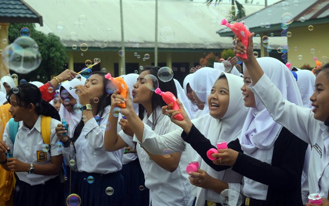 Keceriaan siswa saat pulang sekolah