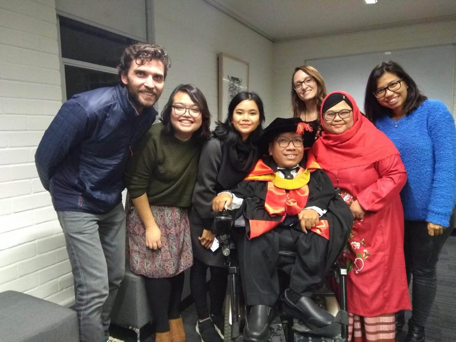 Jadilah setelah menyelesaikan kuliah S-3, dia balik ke Padang. Sembari menggondol catatan sebagai difabel berat pertama yang meraih doktor di kampus luar negeri.