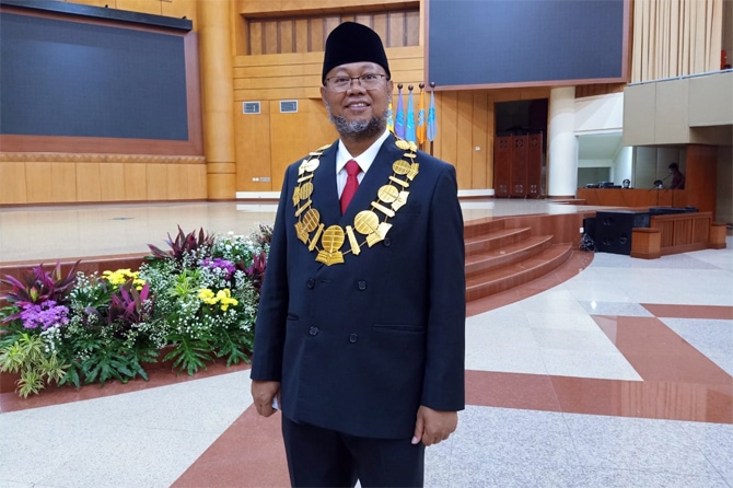 PUNYA MISI KUAT: Rektor Universitas Terbuka (UT) Ojat Darojat setelah mengikuti pelantikan di Kompleks Kampus UT, Tangerang Selatan, Selasa (24/8).