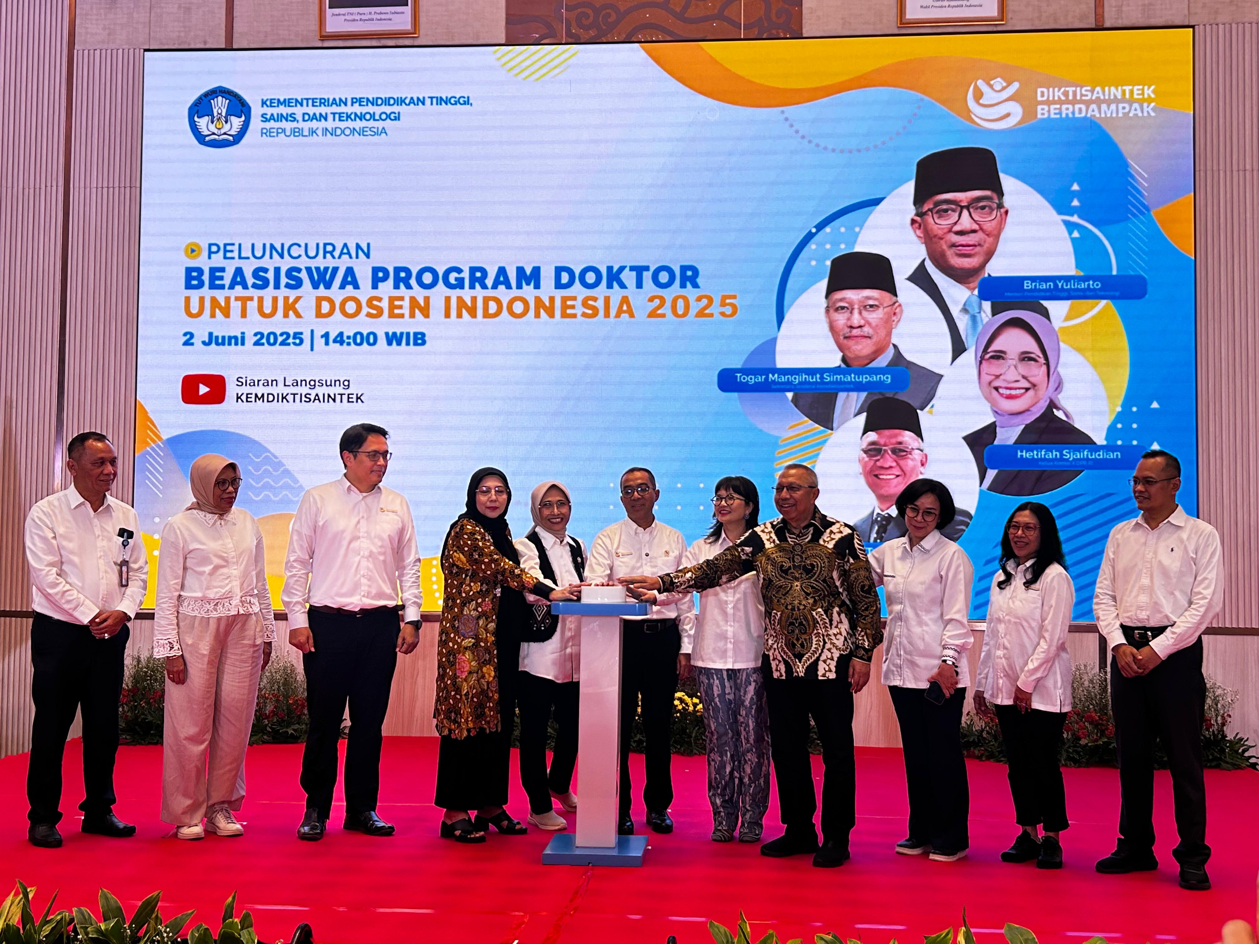 Mendiktisaintek Brian Yuliarto meluncurkan Program Doktor untuk Dosen Indonesia (PDDI), di Kantor Kemendiktisaintek, Jakarta, Senin (2/6). (Humas Kemendiktisaintek)