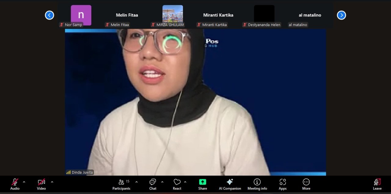 Dinda Juwita saat membawakan materi dalam sesi “Virtual Assistant for Beginners: Langkah Awal Menuju Karir Fleksibel” yang diselenggarakan oleh JP Learning Hub secara daring. (Dok. JP)