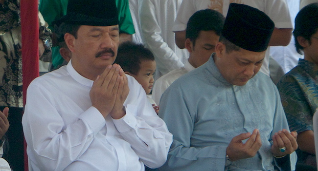 Wakapolri Komjen Budi Gunawan dan Kepala BNN Komjen Budi Waseso usai salat Iduladha di Mabes Polri, Kamis (24/9).