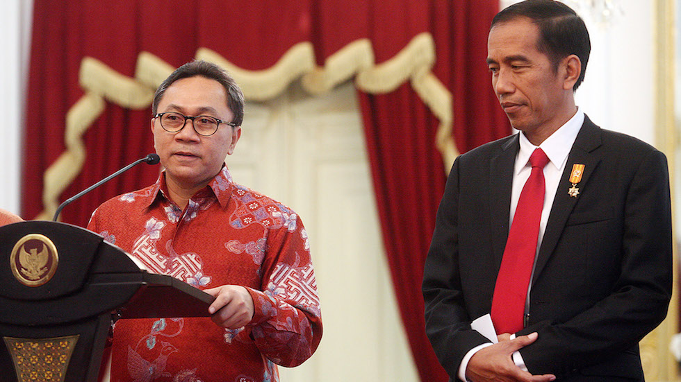 Ketua Umum Partai Amanat Nasional (PAN) Zulkifli Hasan (kiri) dan Presiden Joko Widodo di Istana Negara.