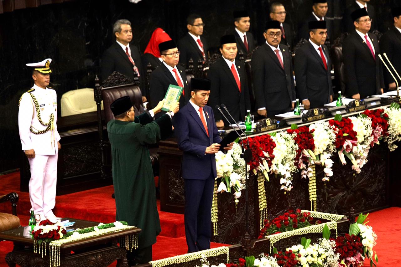 Presiden Joko Widodo (Jokowi) membacakan sumpah jabatan. (Dery Ridwansah/JawaPos.com