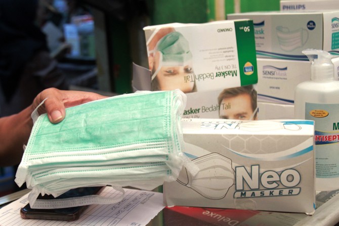 Sejumlah warga membeli masker dan cairan pembersih tangan (