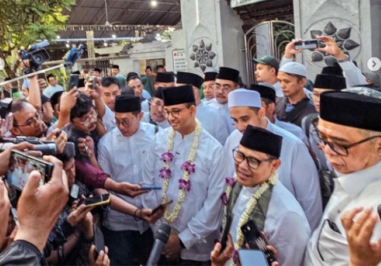 Pasangan bakal capres-cawapres Anies Baswedan-Muhaimin Iskandar (Amin) melakukan ziarah ke makam Sunan Ampel, Surabaya, Sabtu (9/9).