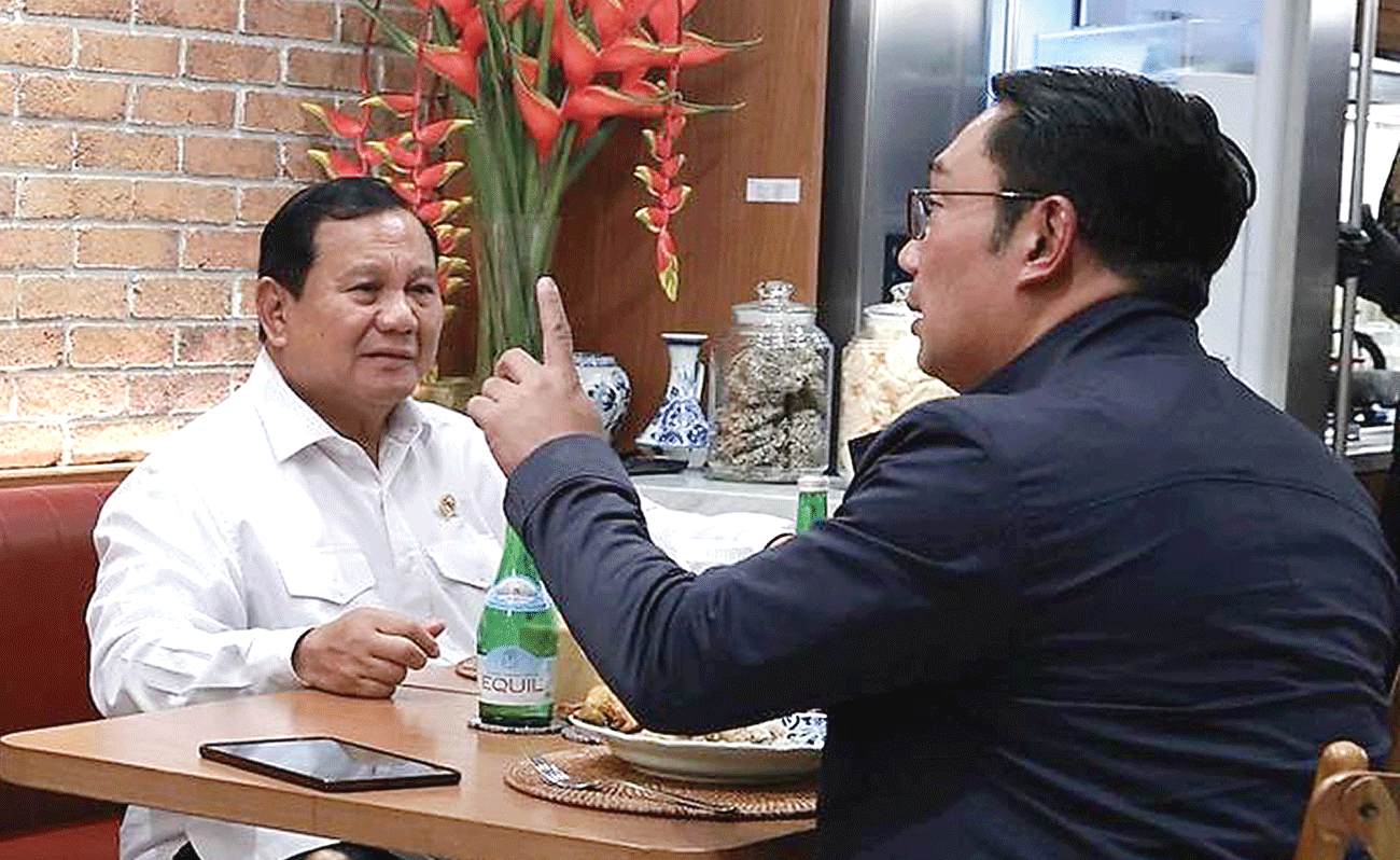 Selain penjajakan, Mekeng memaknai pertemuan itu sebagai upaya Prabowo memagari RK agar tidak keluar dari Golkar. Terlebih, RK yang dominan di Jawa Barat berpotensi diambil calon lawannya. ”Ya itu termasuk (memagari), makanya dipanggil, diajak ngobrol gitu loh. Sehingga nanti muncul dia akan memutuskan koalisinya siapa yang lebih pantas, yang bisa memenangkan,” imbuhnya.