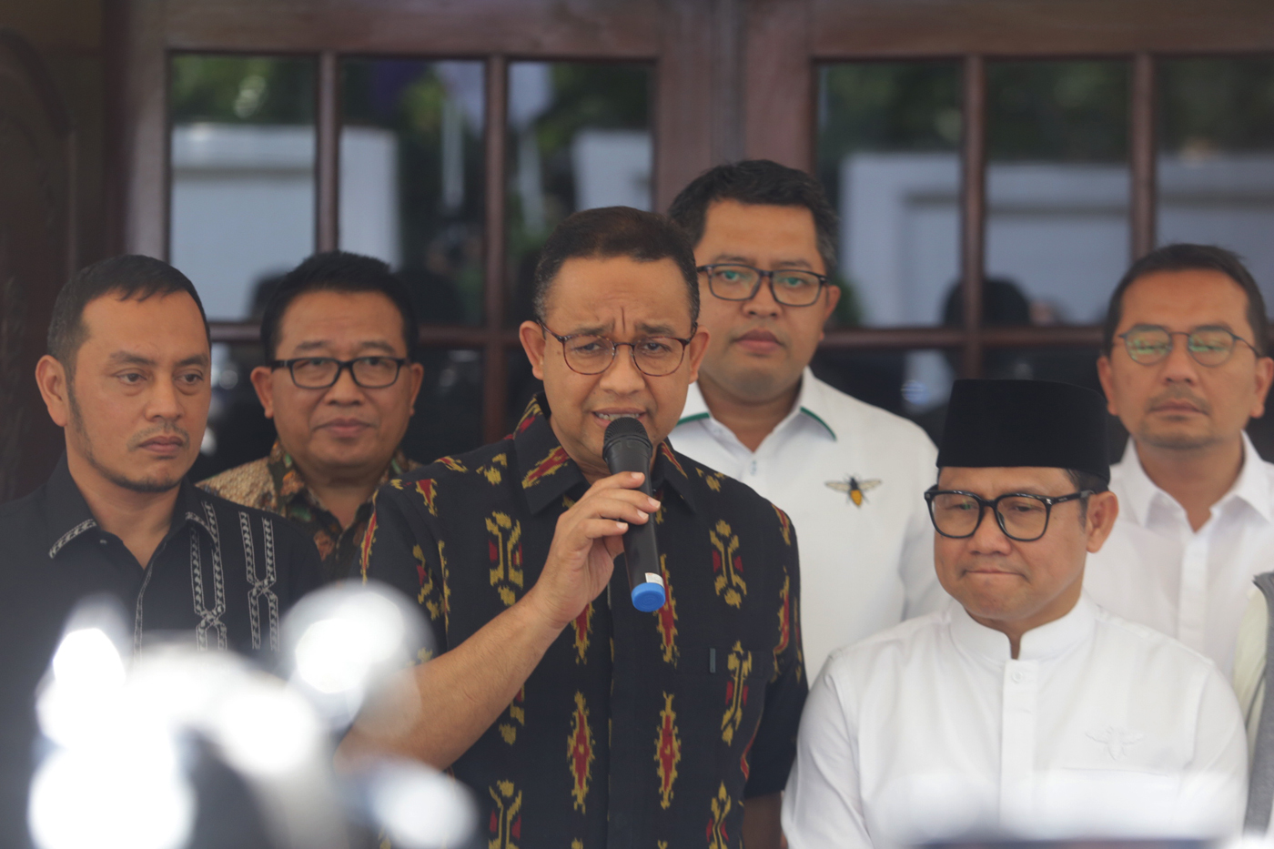 Anies Baswedan dan Muhaimin Iskandar saat rapat Koalisi Perubahan untuk membahas Kelompok Kerja (Pokja) Pemenangan Anies Baswedan dan Muhaimin Iskandar, di Brawijaya, Jakarta Selatan. - Image