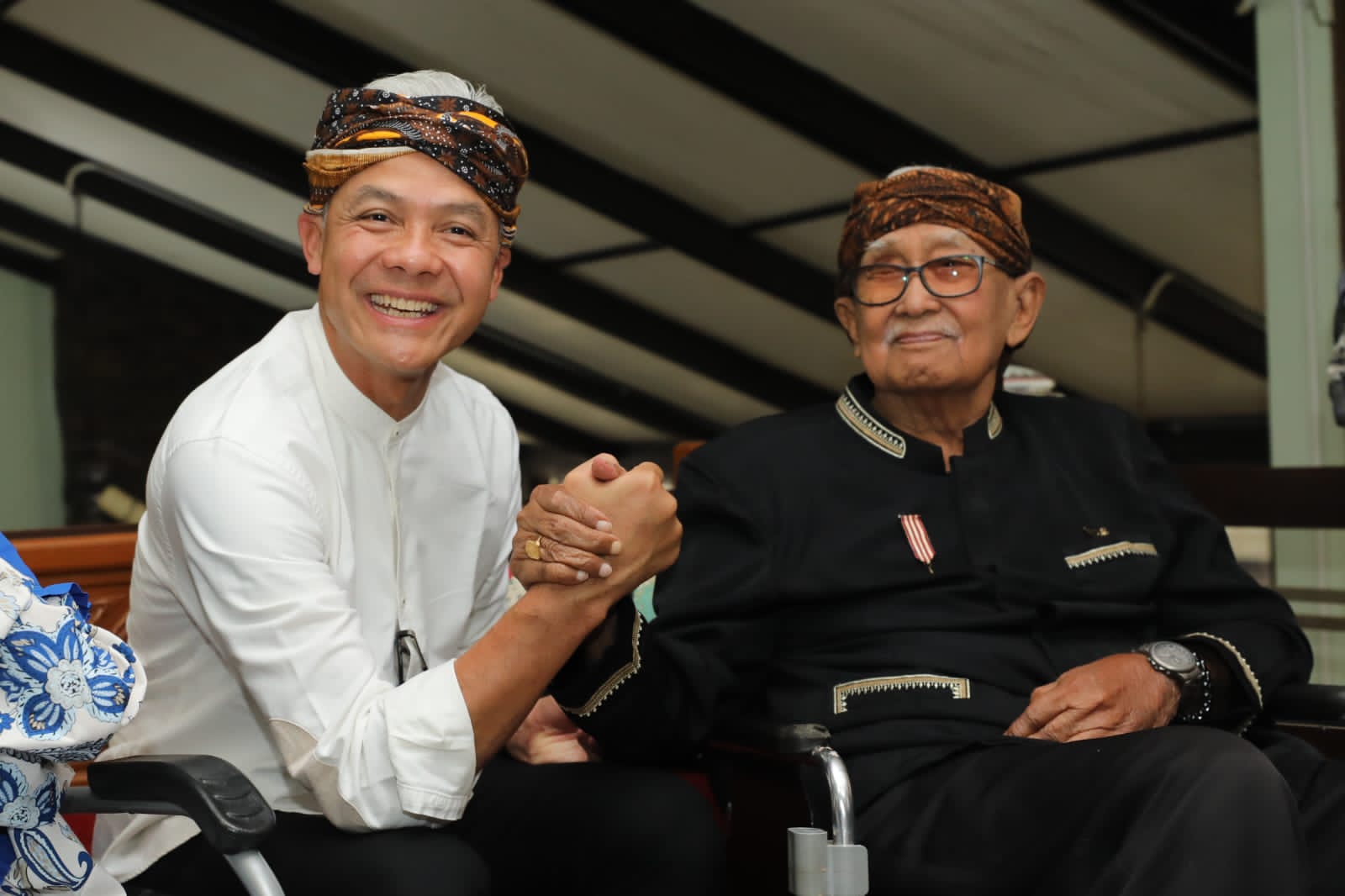 Bacapres Ganjar Pranowo menyambangi Solihin Gautama Purwanegara (Solihin GP) di kediamannya yang berada di kawasan Coblong, Kota Bandung, Jawa Barat, Rabu (4/10). (Tim Ganjar untuk JawaPos.com)