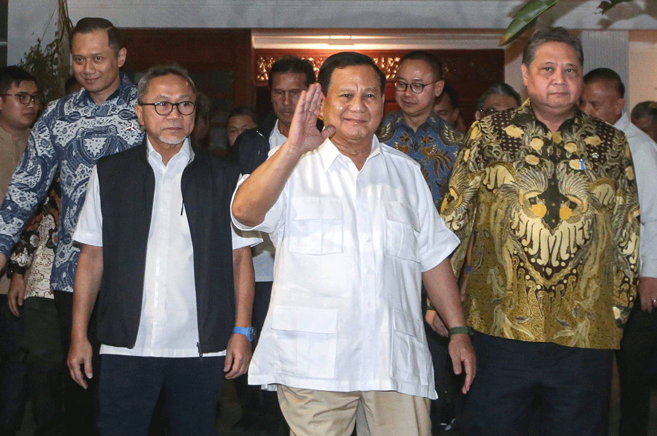 KONSOLIDASI KOALISI: Prabowo Subianto dan para ketua partai pendukung di Rumah Kertanegara, Jakarta, Jumat malam (13/10).