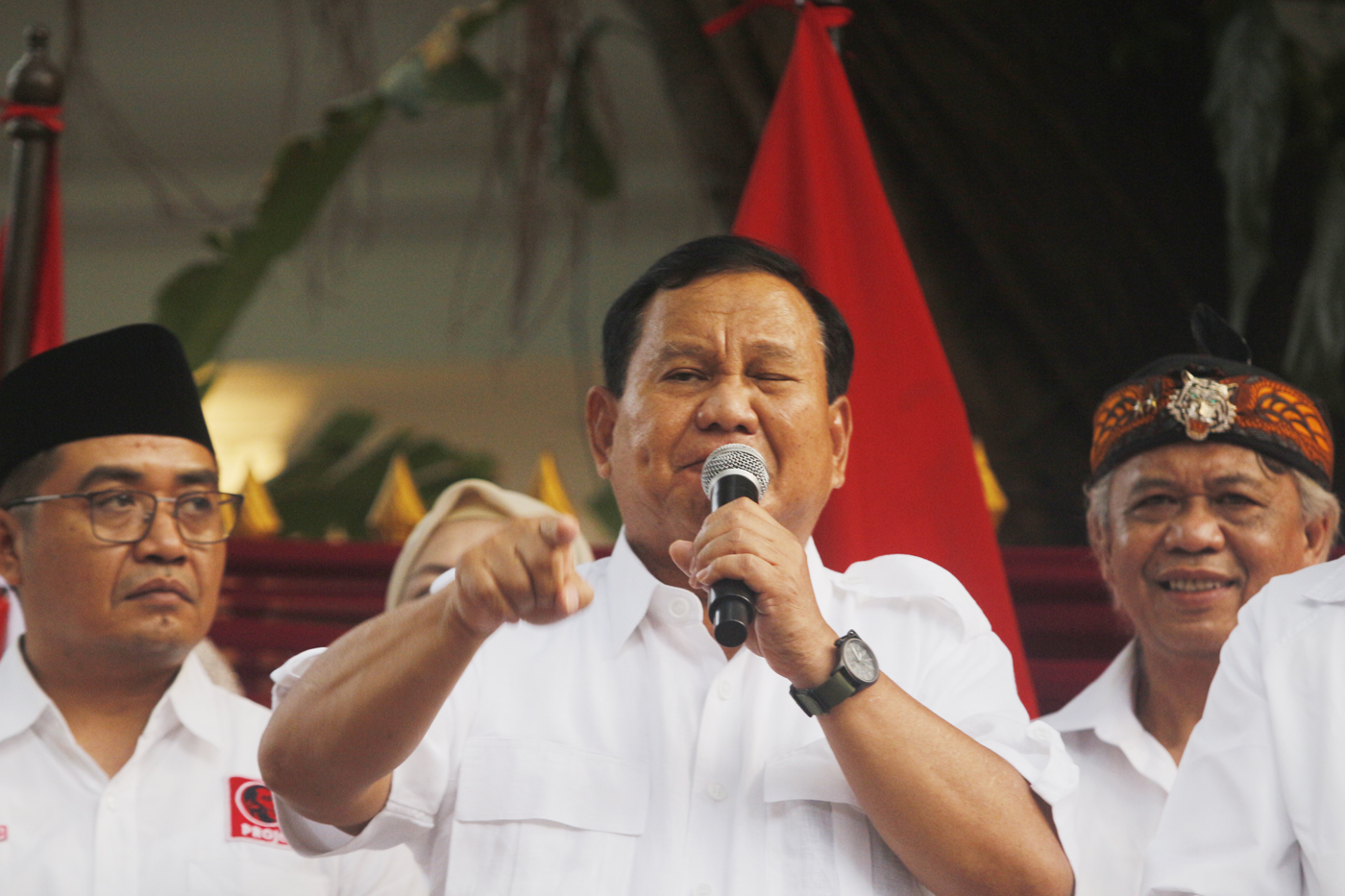 Ketua DPP Projo Budi Arie Setiadi memberikan dukungan atas relawan Projo kepada Ketua Umum Partai Gerindra Prabowo Subianto pada acara deklarasi dukungan di kediaman Prabowo, Jalan Kertanegara, Jakarta, Sabtu (14/10/2023).