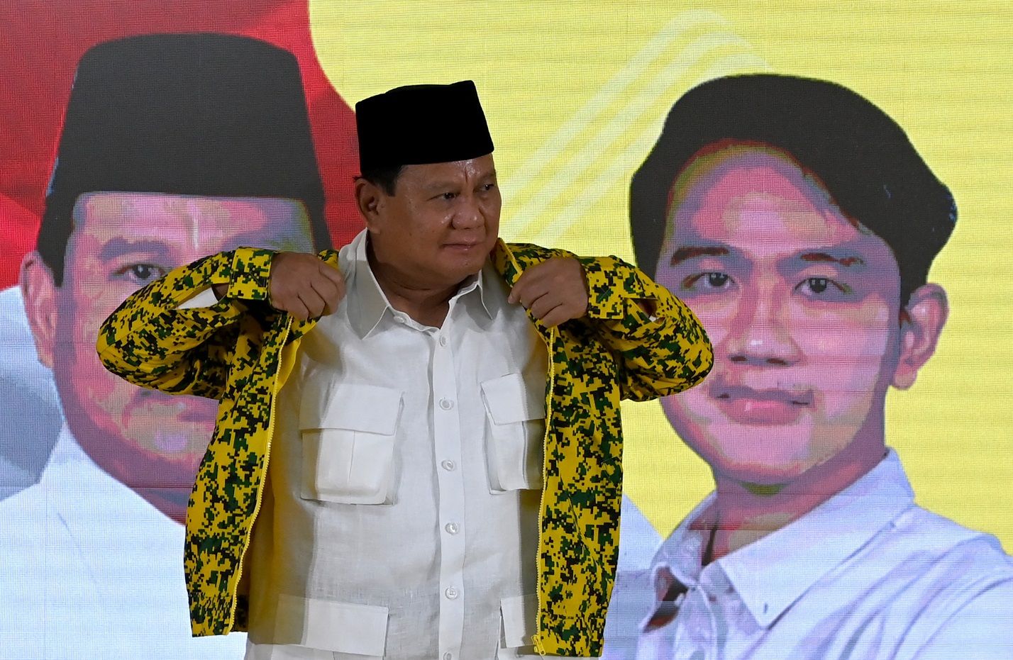 Bela Gibran Rakabuming, Prabowo minta publik jangan bawa istilah dinasti ke arah negatif./Antara/Sigid Kurniawan/