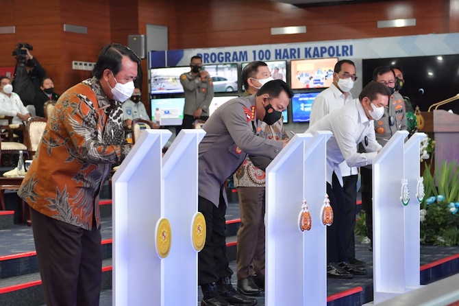 JawaPos.com - Kapolri Jenderal Listyo Sigit Prabowo meresmikan program Electronic Traffic Law Enforcement (ETLE) nasional tahap 1. Mulai hari ini ada 12 Polda dengan jumlah 244 kamera yang siap menjalankan tilang elektronik.