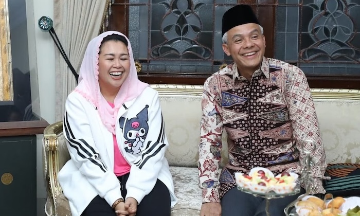 Putri Presiden RI keempat Abdurrahman Wahid alias Gus Dur, Yenny Wahid saat bersama Ganjar Pranowo.