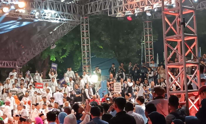 Menanggapi hal itu, pendukung Anies-Muhaimin langsung menerikaan yel-yel baru. "Nomor satu, satu putaran. Nomor satu, satu putaran. Pilih Anies-Muhaimin."