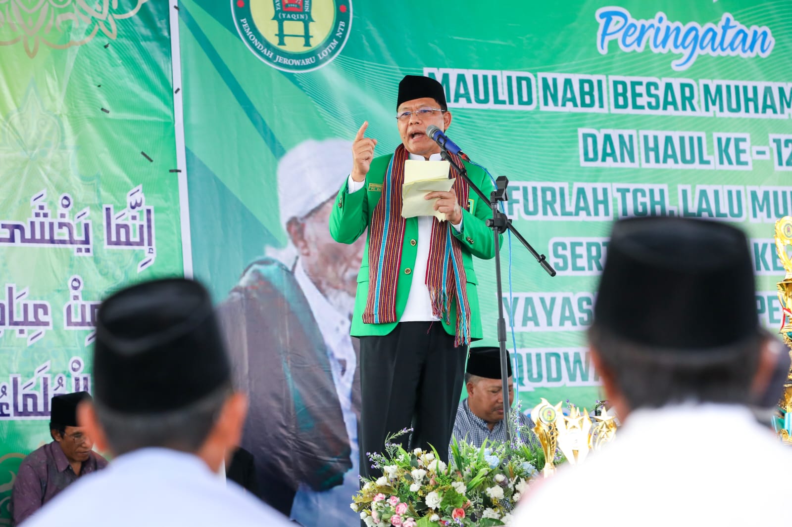 Plt Ketua Umum PPP Muhamad Mardiono saat menghadiri peringatan Haul TGH Lalu Muhammad Nuh yang ke-12 sekaligus Harlah Yayasan Ponpes Qudwatussholihin ke-30, di Lombok Timur.