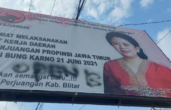 Baliho Puan Maharani yang dicoret-coret. Istimewa