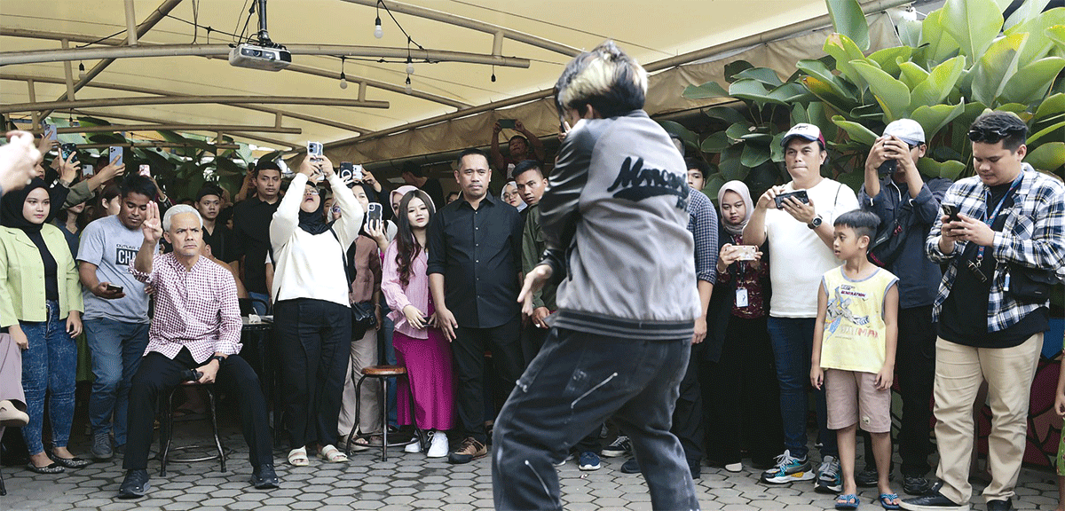 Ganjar Pranowo menyempatkan diri nongkrong bersama anak-anak muda Pontianak di sela kunjungannya di Bumi Khatulistiwa. Kesempatan tersebut tentu saja tidak disia-siakan oleh generasi muda di sana untuk bertemu langsung dan mengobrol bareng ayah Zinedine Alam Ganjar itu.
