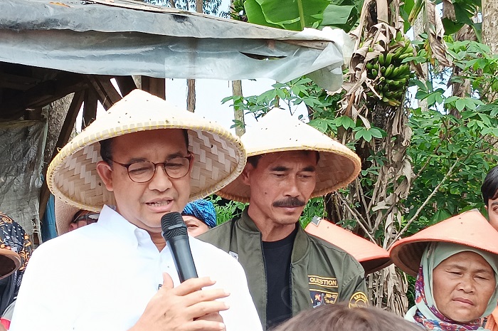 Capres nomor urut 1, Anies Baswedan, mendengarkan keluhan para petani di Warnasari, Pangalengan, Kabupaten Bandung, Jawa Barat, Rabu (29/11).