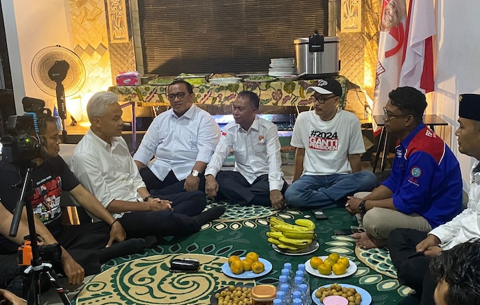 Sambil duduk lesehan di rumah buruh, Ganjar mendapatkan keluhan terkait isu-isu ketenagakerjaan. Misalnya, persoalan upah buruh dan revisi UU Cipta Kerja.