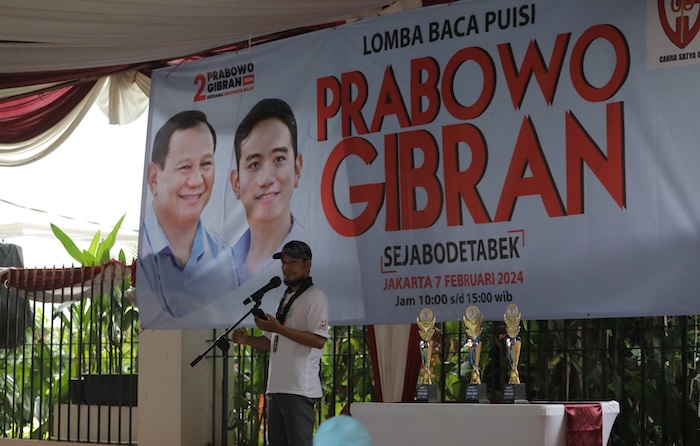 Sementara, Budayawan Betawi Harry De Fretes mengapresiasi lomba baca puisi yang diadakan Relawan CS 08. Dia menilai, kegiatan yang diselenggarakan para relawan ini menjadi bukti nyata bahwa Prabowo-Gibran memiliki perhatian khusus terhadap seni dan budaya.