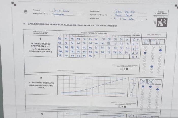 Sementara itu, berdasarkan hasil hitung cepat dari sejumlah lembaga survei menyebut bahwa perolehan suara paslon nomor 2 Prabowo Subianto-Gibran Rakabuming Raka mengungguli paslon nomor 1 Anies Baswedan-Muhaimin Iskandar dan paslon nomor 3 Ganjar Pranowo-Mahfud MD.