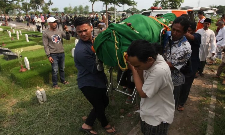 Jenazah Joko Budiono, petugas KPPS Ngagel Rejo, dimakamkan di TPU Keputih, Surabaya. (Radar Surabaya)