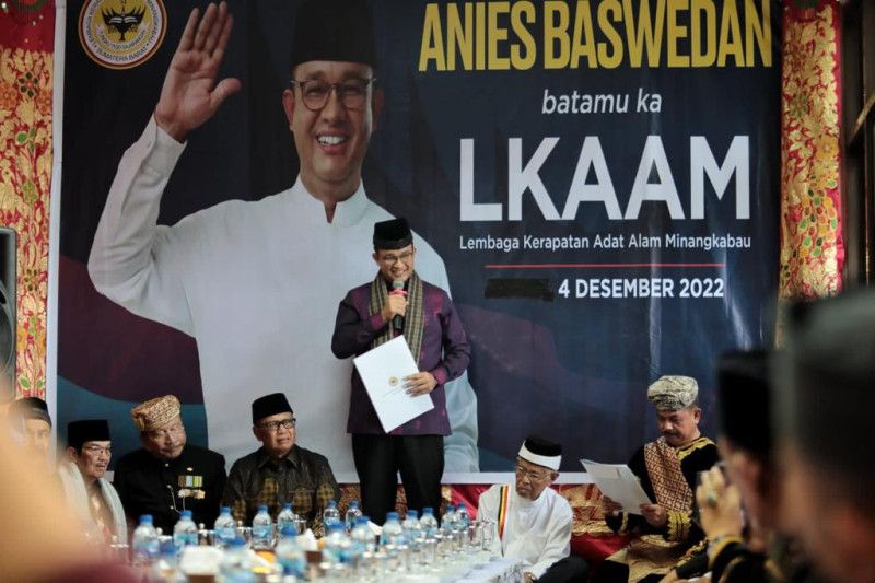 Bakal calon presiden Anies Baswedan bertemu Lembaga Kerapatan Adat Alam Minangkabau (LKAAM) di Padang, Minggu (4/12/2022). (ANTARA/HO-Dokumentasi Pribadi)