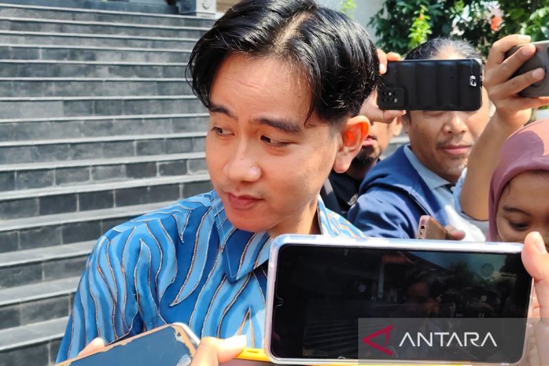 Gibran Rakabuming Raka memberikan keterangan kepada wartawan di Solo, Jawa Tengah, Senin (8/7/2024). (ANTARA/Aris Wasita)