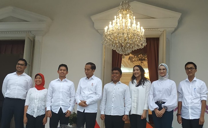 Presiden Jokowi memperkenalkan 7 staf khususnya dari kalangan milenial. (Raka Deny/Jawa Pos)