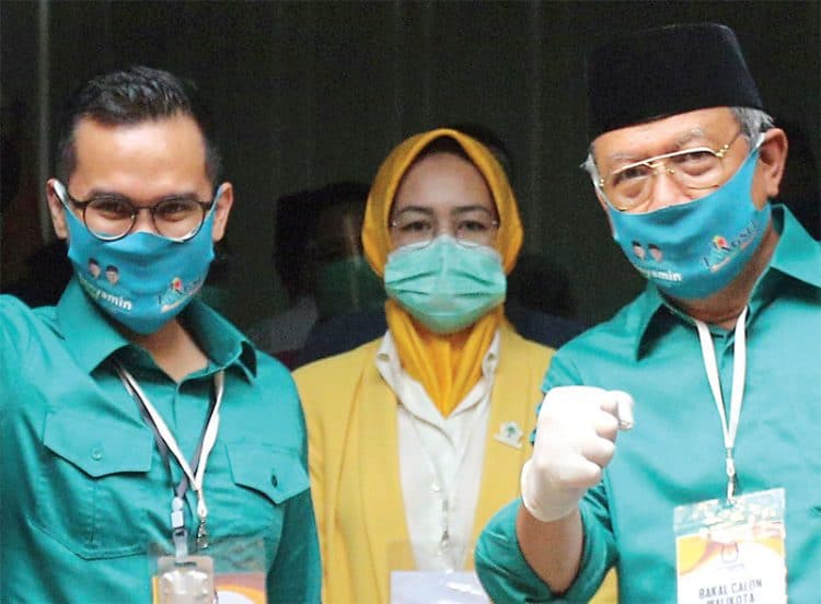 SIAP BERSAING: Bacawali Tangsel Benyamin Davnie (kanan), bersama pasangannya, Pilar Saga, juga mendaftar di hari yang sama. (SALMAN TOYIBI/JAWA POS)