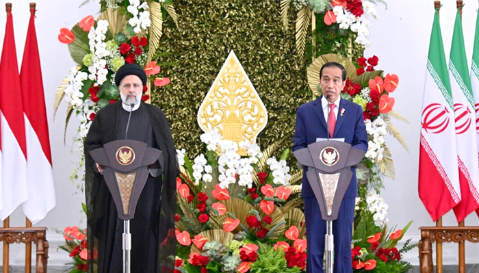 HUBUNGAN BILATERAL: Presiden RI Jokowi dan Presiden Republik Islam Iran Seyyed Ebrahim Raisi (kiri) bertemu di Istana Bogor, Selasa (23/5).