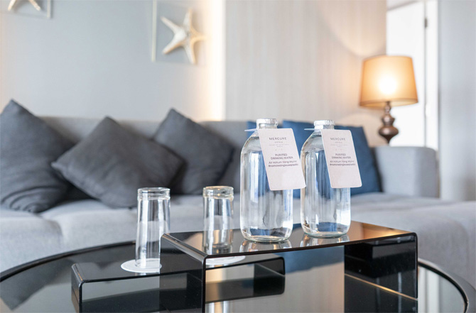 Dengan total kamar 438 dan 15 ruang meeting yang efektif, Mercure Convention Center, Ancol-Jakarta membutuhkan setidaknya 4000 liter air minum per hari. Untuk diketahui, Drinking Water System menggunakan sistem BLUWATER Reverse Osmosis (RO) terbaru dari Swedia dengan output air bersih dan higienis sesuai standar internasional.
