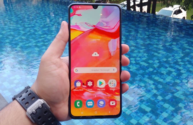 Secara keseluruhan, Samsung Galaxy A70 dari aspek desain dan layar bolehlah diberi acungan dua jempol. Pengalaman ketika menggunakan smartphone ini di bawah terpaan sinar matahari langsung, layarnya tampil dengan sangat baik. Jelas saja, materialnya AMOLED. Soal resolusi dan ketajaman tak perlu diragukan. Namun agar lebih maksimal tentu harus mengatur tingkat kecerahan alias brightness ke mode penuh atau maksimal.