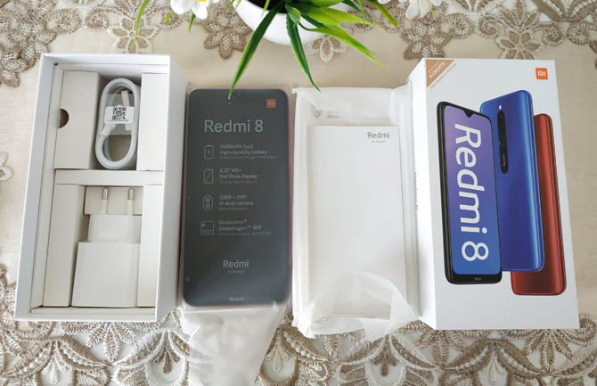 Kelengkapan smartphone Redmi 8. (Fadhil Al Birra/JawaPos.com)