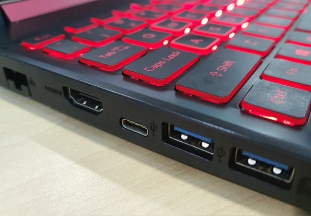 Acer Nitro 5 memiliki backlight merah pada keyboard. (Dhimas Ginanjar/JawaPos.com)