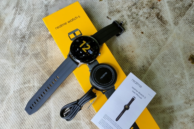 Dalam paket penjualan, smartwatch ini hadir dengan aksesori lain berupa dock charger magnetik ditambah dengan buku panduan dan kartu garansi. Boks atau kotak penjualannya sendiri masih berbentuk persegi panjang dan berwarna kuning cerah persis seperti kotak penjualan smartphone Realme kebanyakan dan perangkat Realme Watch terdahulu.
