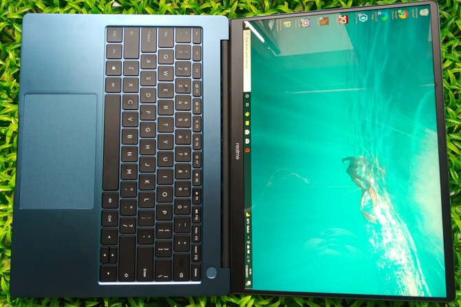 Realme Book memiliki desain tepi yang sangat tipis dengan bezel 5,3 mm. Keuntungan dari ultra-narrow bezel ini adalah dapat membuat visual lebih menakjubkan dan memberi pengalaman yang lebih menyeluruh karena rasio layarnya mencapai 90 persen lebih tinggi bahkan dari MacBook Air.