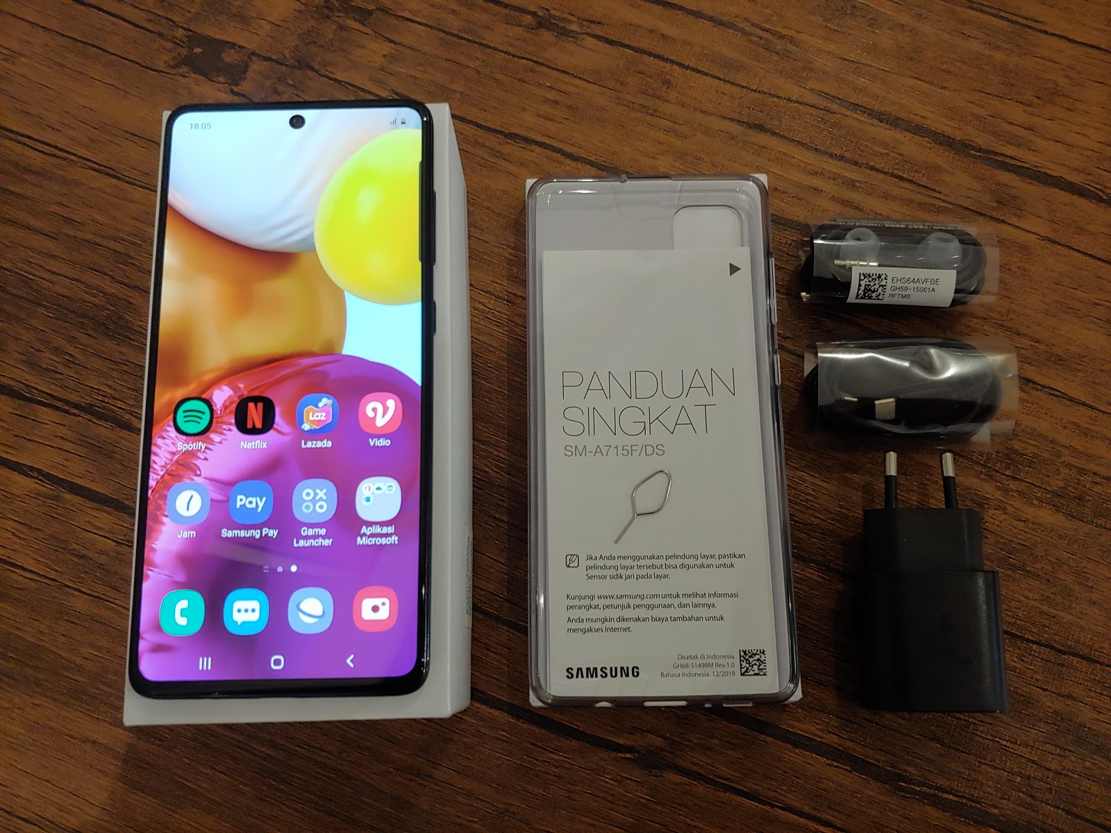 Untuk kelengkapan sendiri, Samsung Galaxy A71 di Indonesia masih mendapat sentuhan desain boks berwarna putih cerah. Kemasan Galaxy A71 sama seperti kemasan Galaxy A50 yang sudah pernah kami ulas sebelumnya.