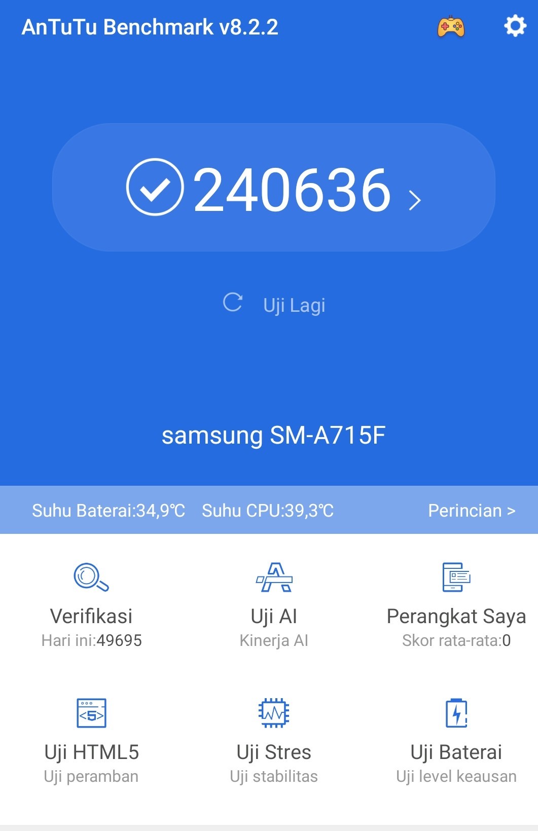 Screenshot uji benchmark Samsung Galaxy A71 (Rian Alfianto/JawaPos.com)