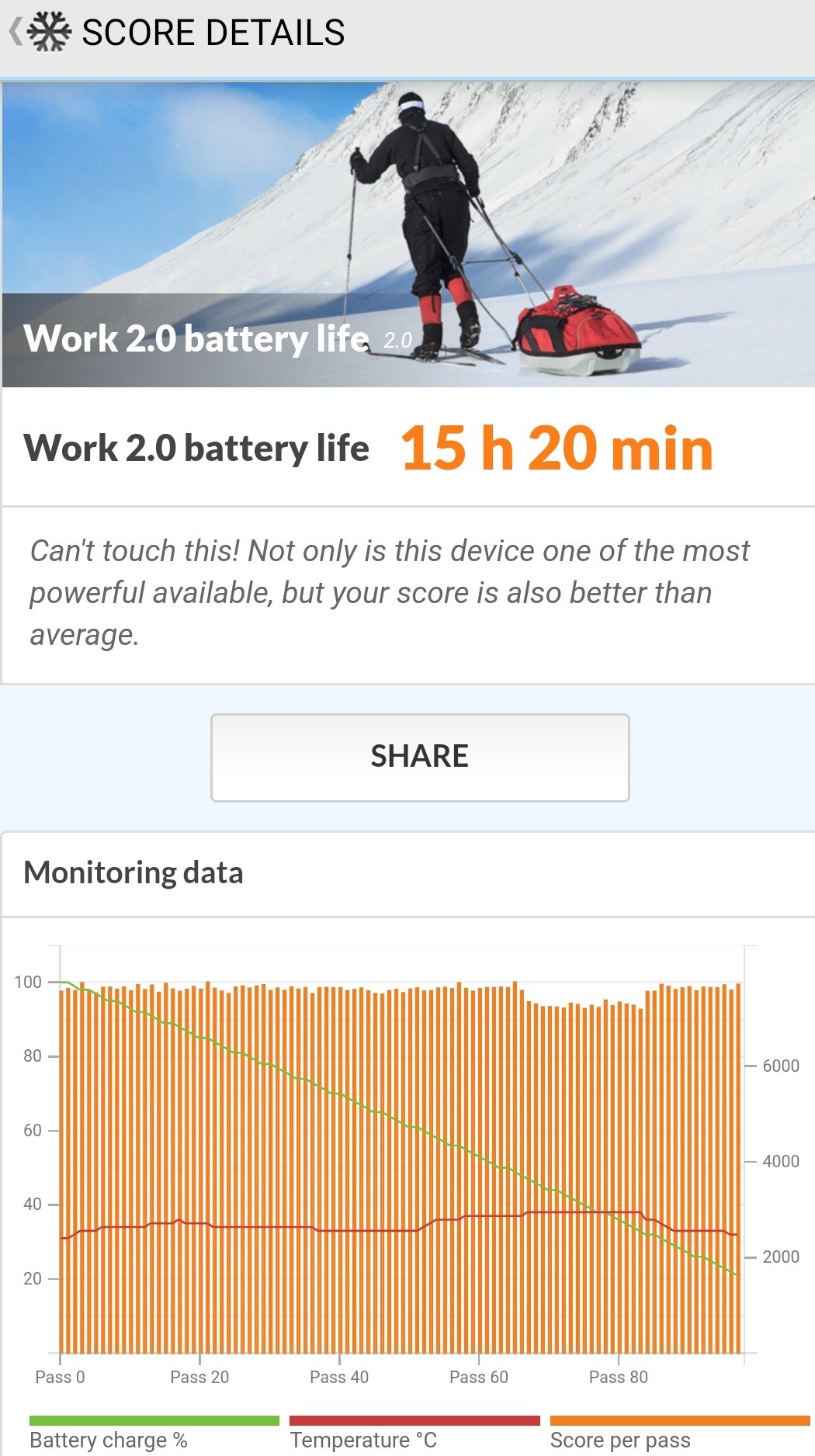 Namun jika digunakan full untuk bekerja, menjalankan banyak aplikasi chatting, sosial media, bermain game, menonton video, dan mendengar musik streaming, Samsung Galaxy A71 hanya sanggup bertahan dari pagi sampai malam. Jika dihitung dengan aktivitas jam-jaman, handset mampu bertahan dalam penggunaan intensif dari pukul 9 pagi sampai dengan jam 12 malam dengan sisa daya menunjukan angka 20 persen.
