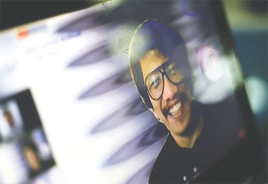 KOLABORASI ANTARNEGARA: Pegiat Teater Garasi Ugoran Prasad dalam bincang daring Rabu lalu (12/8) mengenai kerja sama dengan berbagai seniman di Asia untuk pementasan selanjutnya. (HANUNG HAMBARA/JAWA POS)