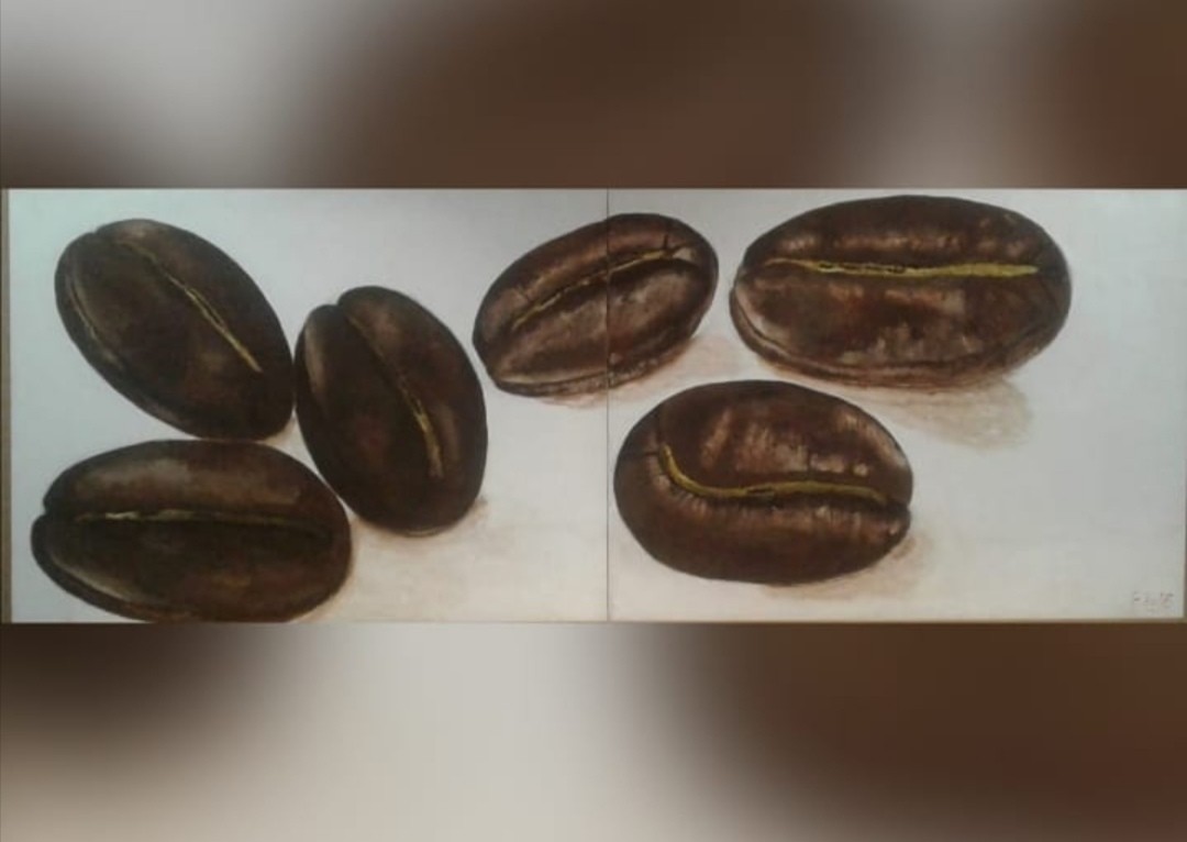 Biji Kopi (2016) karya Edo Makarim, salah satu seniman muda disabilitas Indonesia yang aktif berkarya.