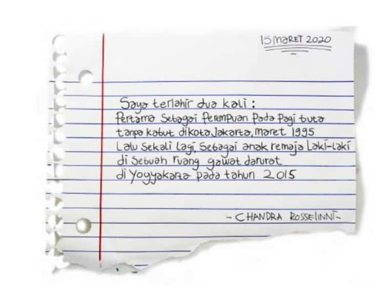 Ketaksaan antara teks dan gambar muncul dalam dua karya tahun 2020 berjudul Selembar Catatan Intersex #1 dan Selembar Catatan Intersex #2 yang masing-masing berukuran 106 x 76 cm. Dua karya ini menggunakan tinta di atas kertas berupa tulisan tangan berisi pernyataan Chandra terkait tema besar pameran ini. ’’Saya ingin menampilkan bentuk asli dari selembar catatan saya. Sengaja menampilkan bentuk sebenarnya dan menulis terang apa adanya,’’ kata Chandra.