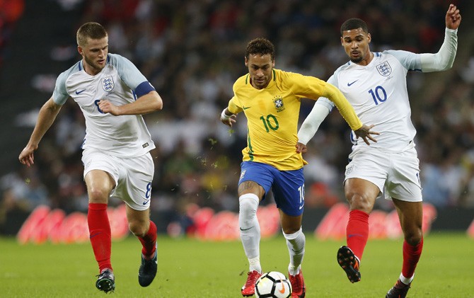 Neymar dibuat frustrasi saat menghadapi pemain-pemain muda Inggris
