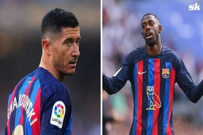 Robert Lewandowski (kiri) dianggap memiliki hubungan kurang harmonis dengan Ousmane Dembele. (sportskeeda)