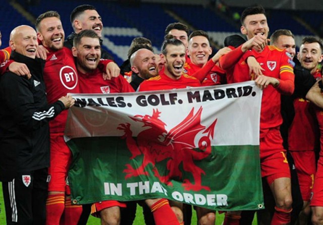 Namun, hal itu lantas menjadi masalah karena pada bagian atas bendera Wales yang dibentangkan Bale dkk terdapat tulisan Wales. Golf. Madrid. Frasa tersebut merujuk pernyataan eks pemain Real Madrid Predrag Mijatovic akhir bulan lalu di Cadena SER.