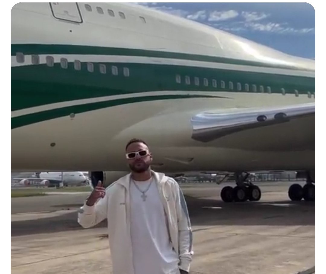 Neymar menumpang jet pribadi Boeing 747 HZ-WBT7 milik Pangeran Al Waleed bin Talal.